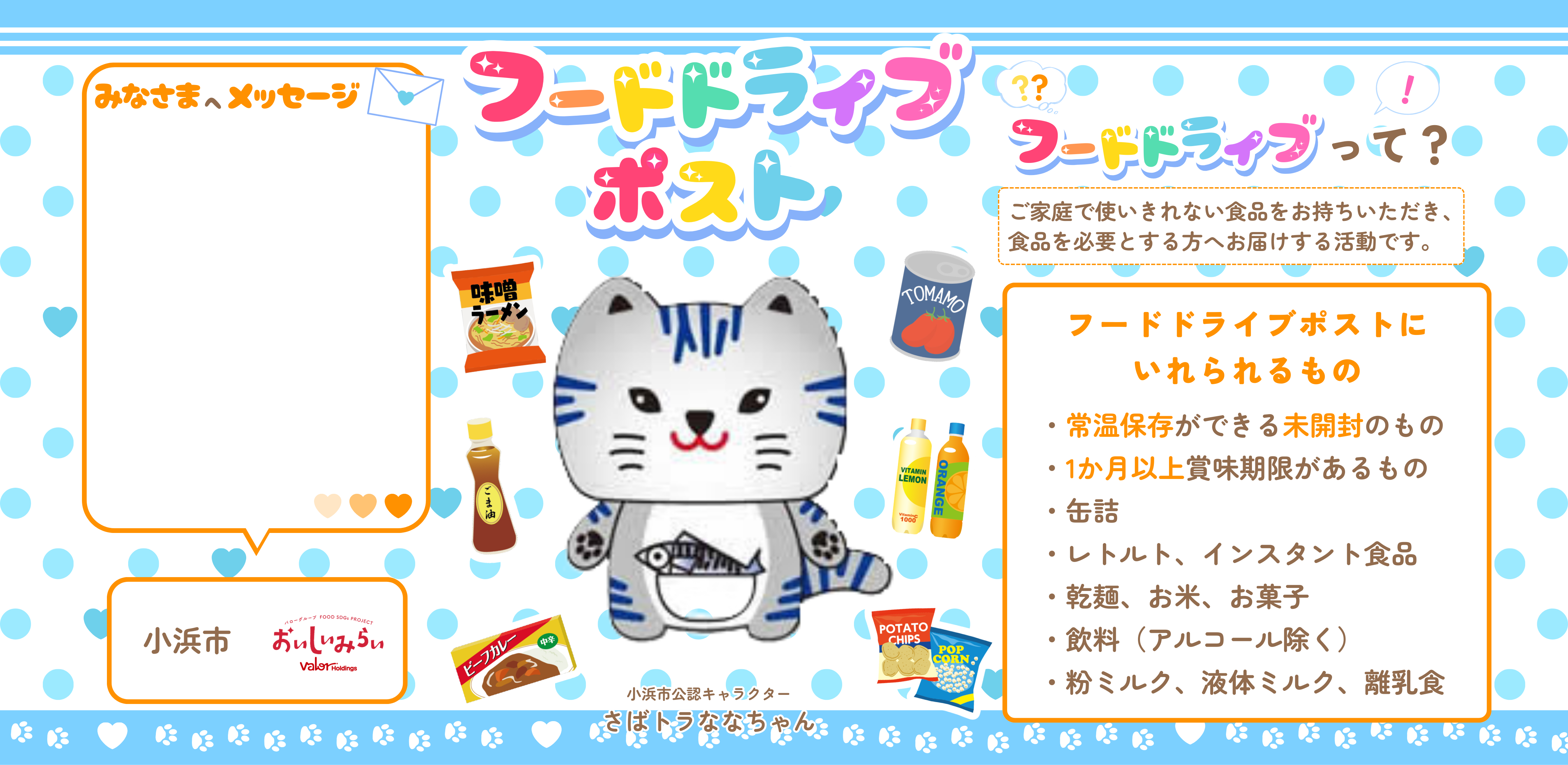 令和7年10月からバローホールディングスと小浜市では、フードドライブを次のとおり実施します。