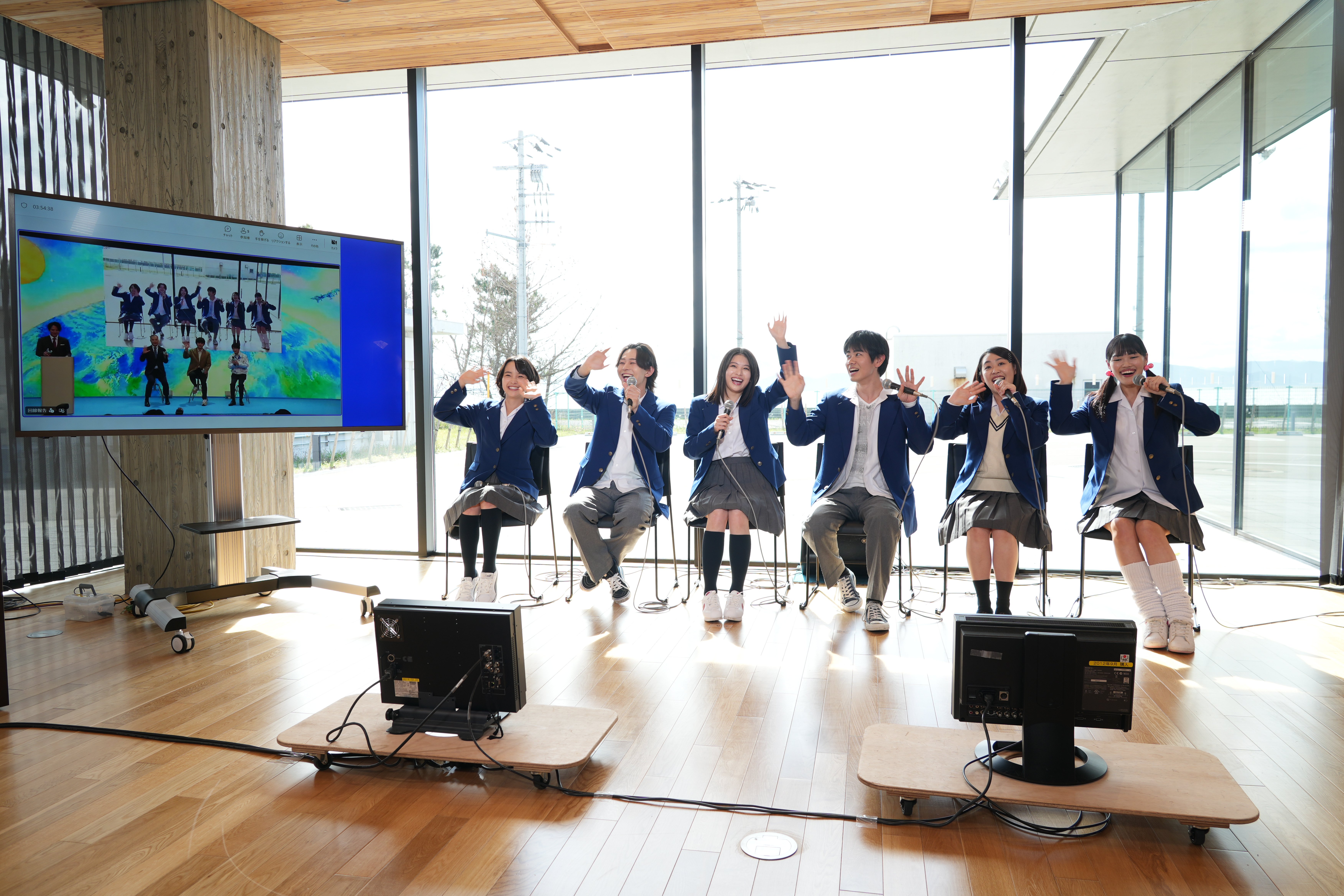 小浜会場では、生徒役の出口夏希さん、黒崎煌代さん、山下永玖さん、西本まりんさん、夏目透羽さん、ゆめぽてさんの6人が登壇し、ドラマへの意気込みや小浜での撮影についてお話ししてくださいました。