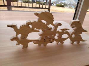 恐竜等の木製遊具が追加され、時を忘れて楽しく遊ぶこどもたちの姿が見られます。