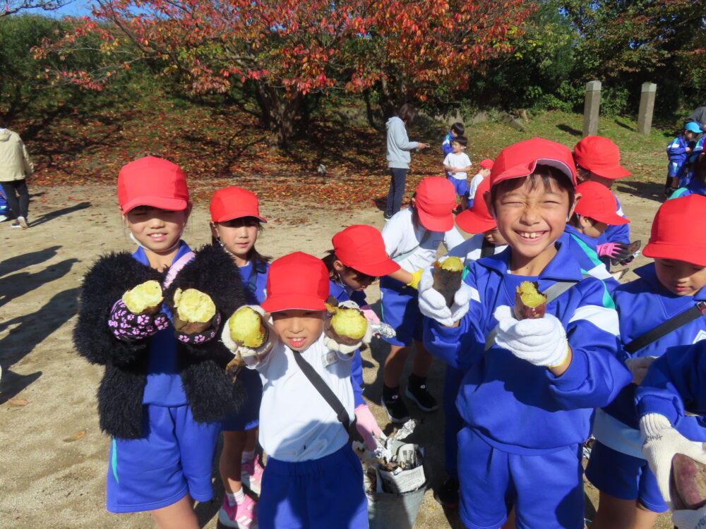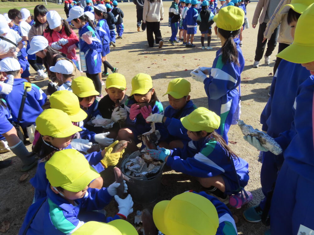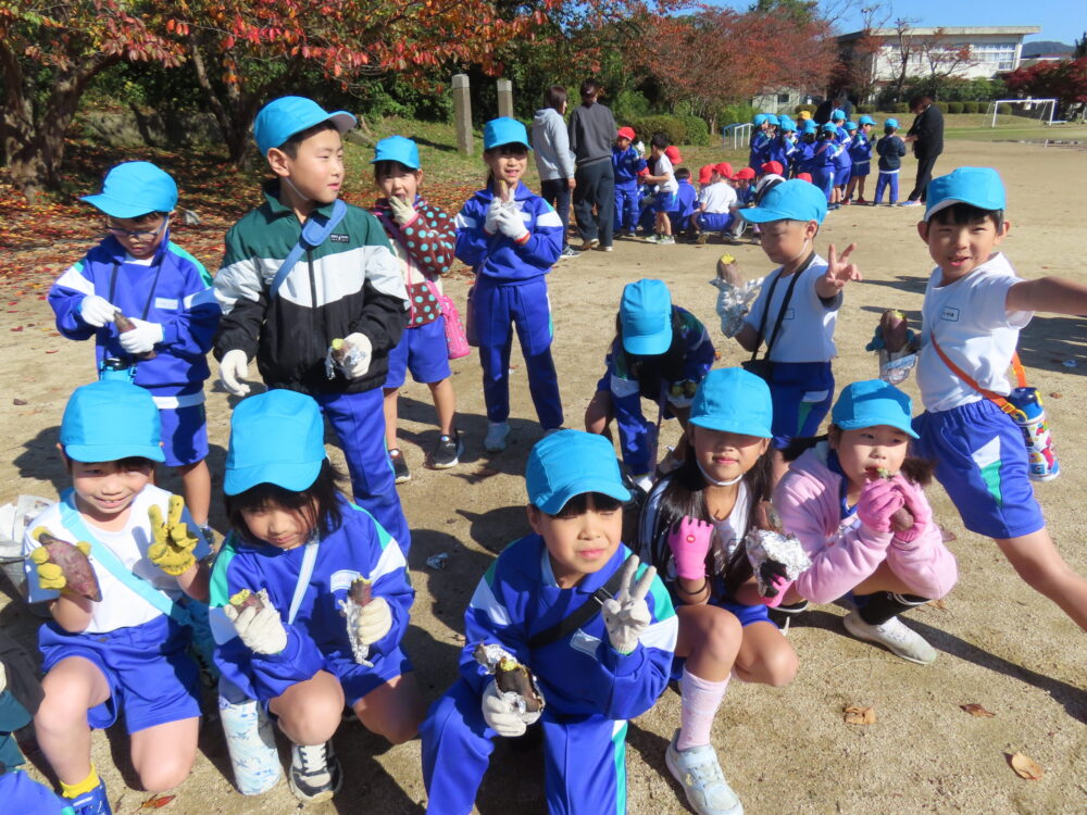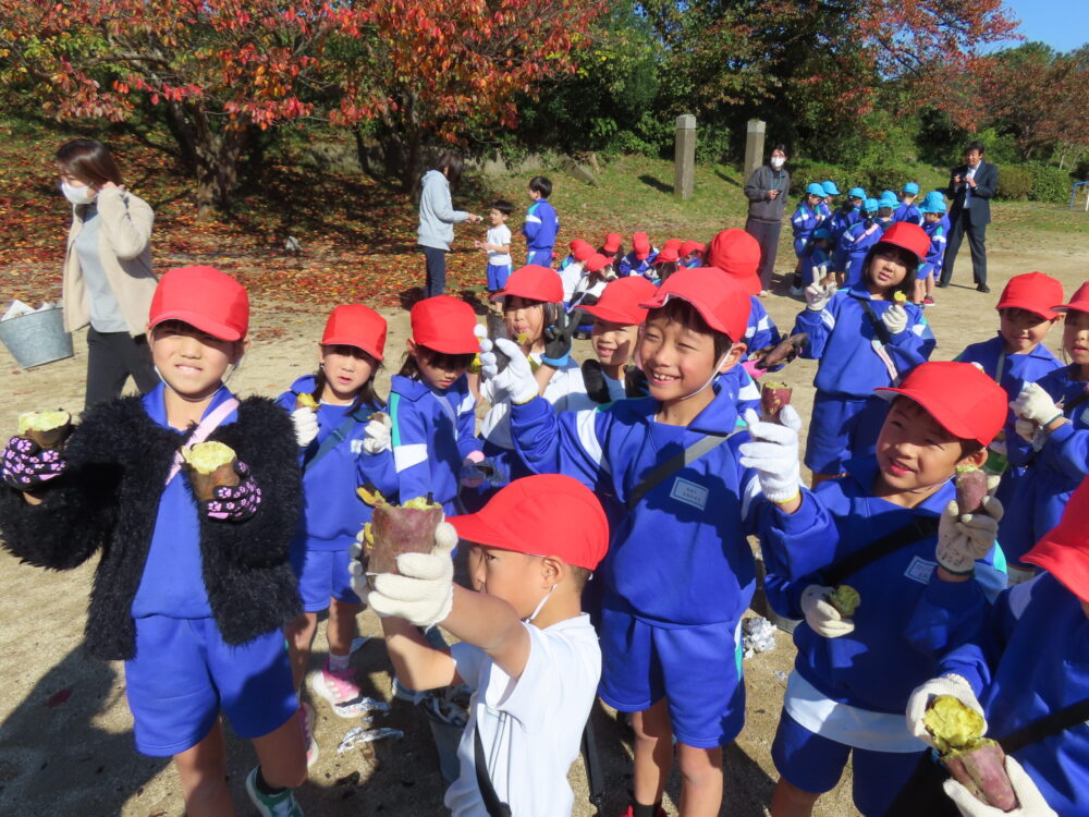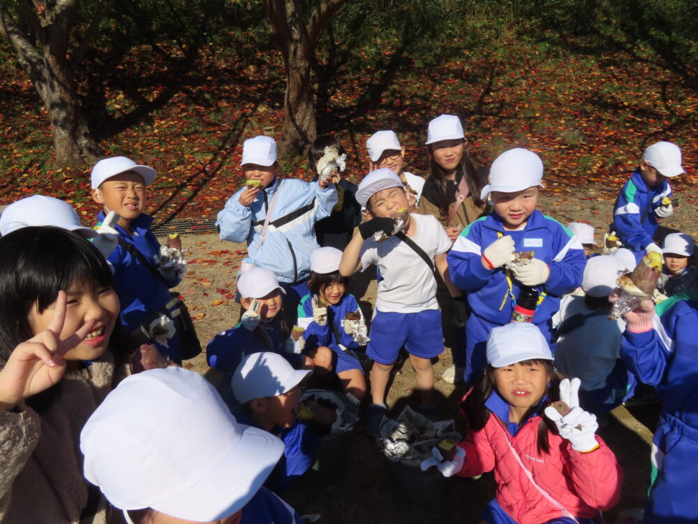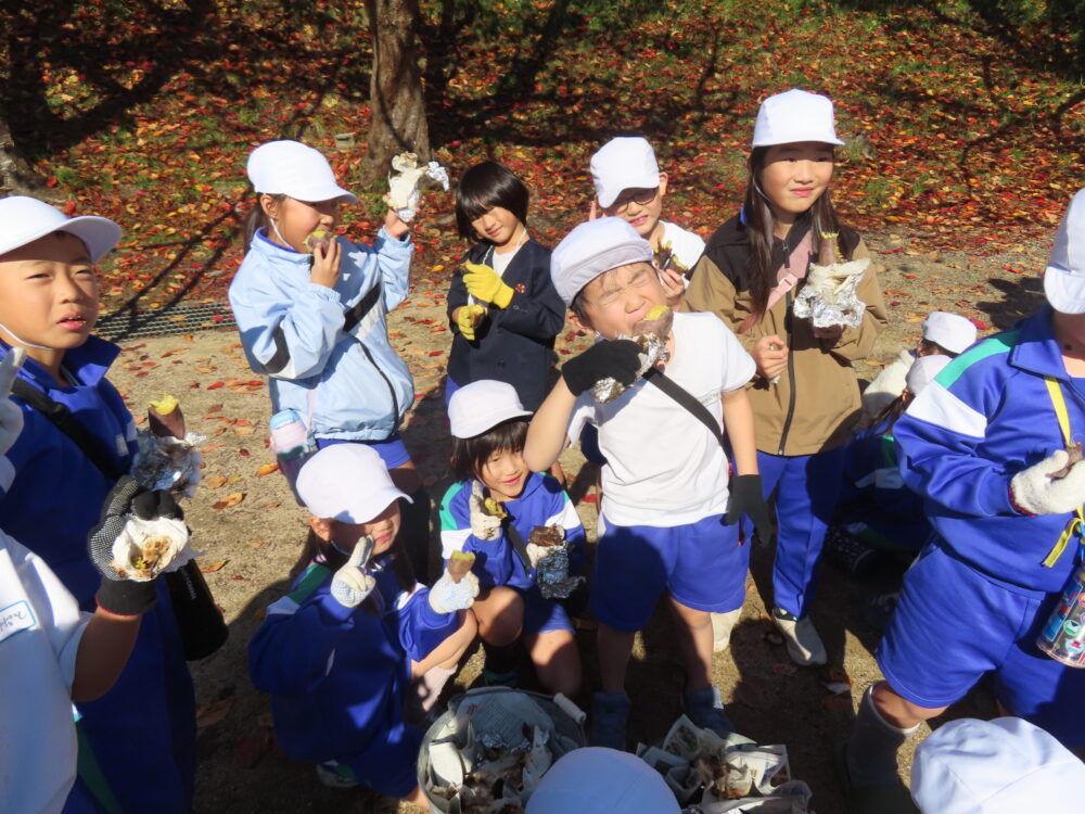 11月20日、今富小学校の1、2年生が、秋の味覚の王様「焼き芋」を堪能しました。