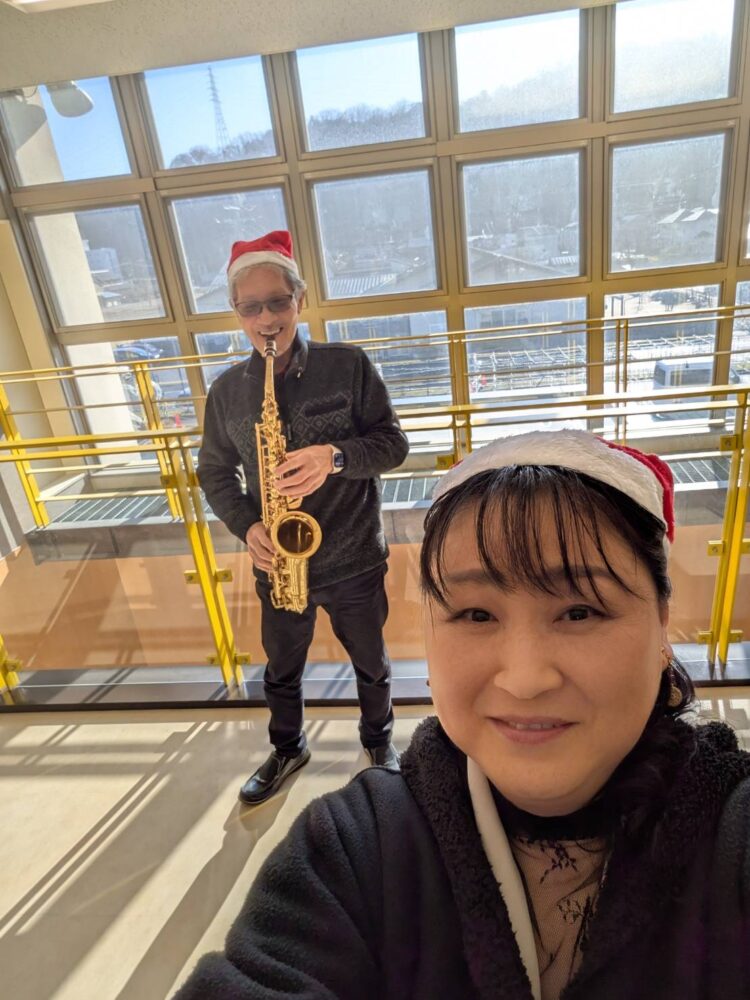 ピアノとサックスの地元ユニットが、クリスマスの雰囲気を盛り上げました。