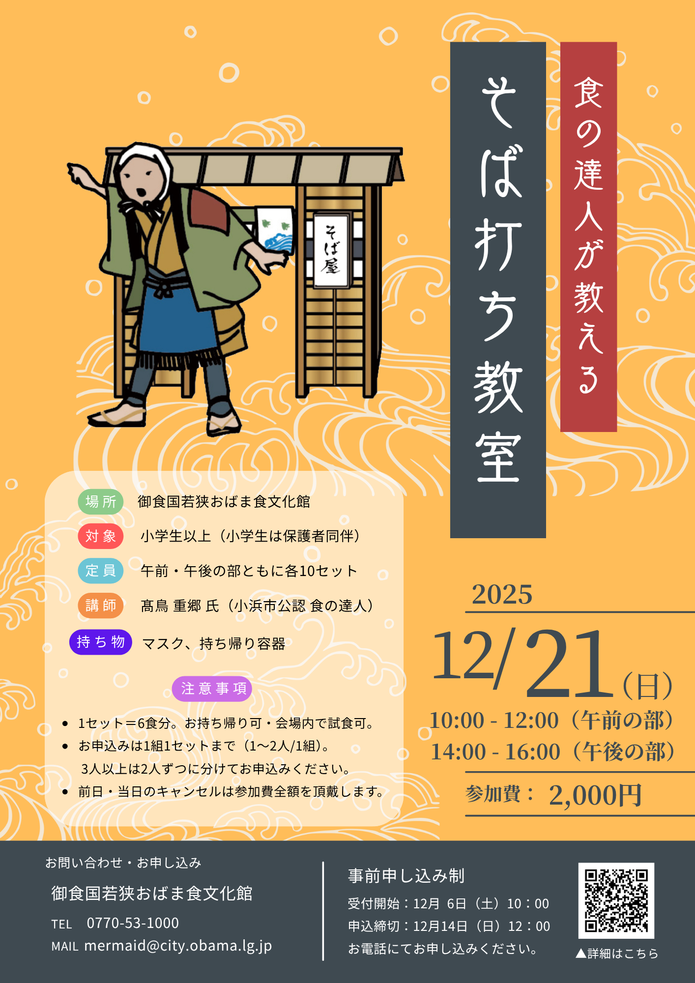 ËèǯÂ繥ɾ¤Î¡¢¿©¤Îã¿Í¡¦üâÄ»½Å¶¿¤µ¤ó¤Ë¤è¤ë¡Ö¤½¤ÐÂǤÁ¶µ¼¼¡×¤òº£Ç¯¤â³«ºÅ¤·¤Þ¤¹¡ª