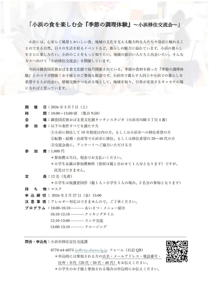 3月7日(土)に、御食国若狭おばま食文化館にて移住交流会を開催します!