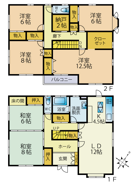 間取り | 6SLDK(1階:和2、LDK、2階:洋4) | ||