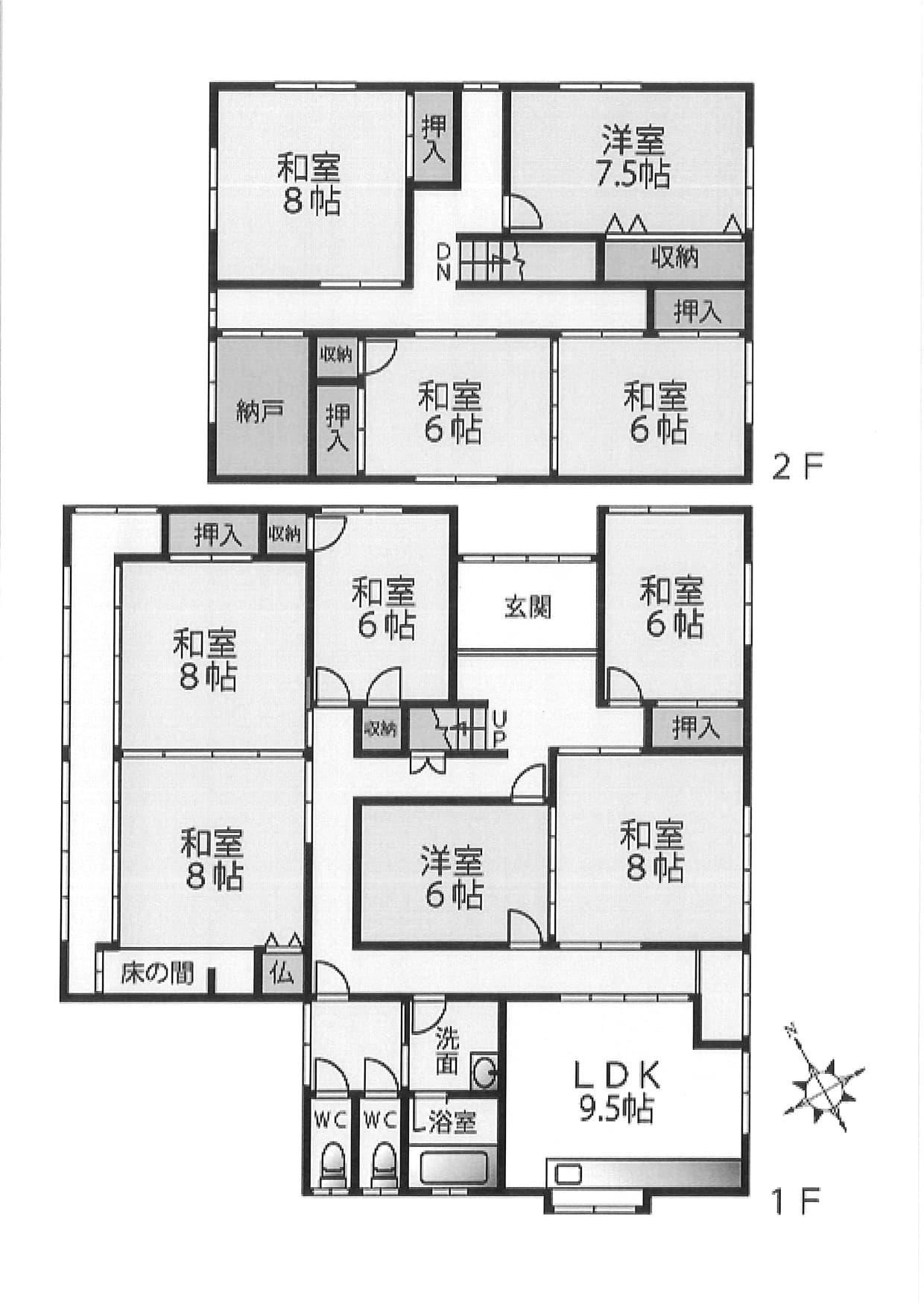 間取り 10SLDK(1階:和5、洋1、LDK、2階:和3、洋1)